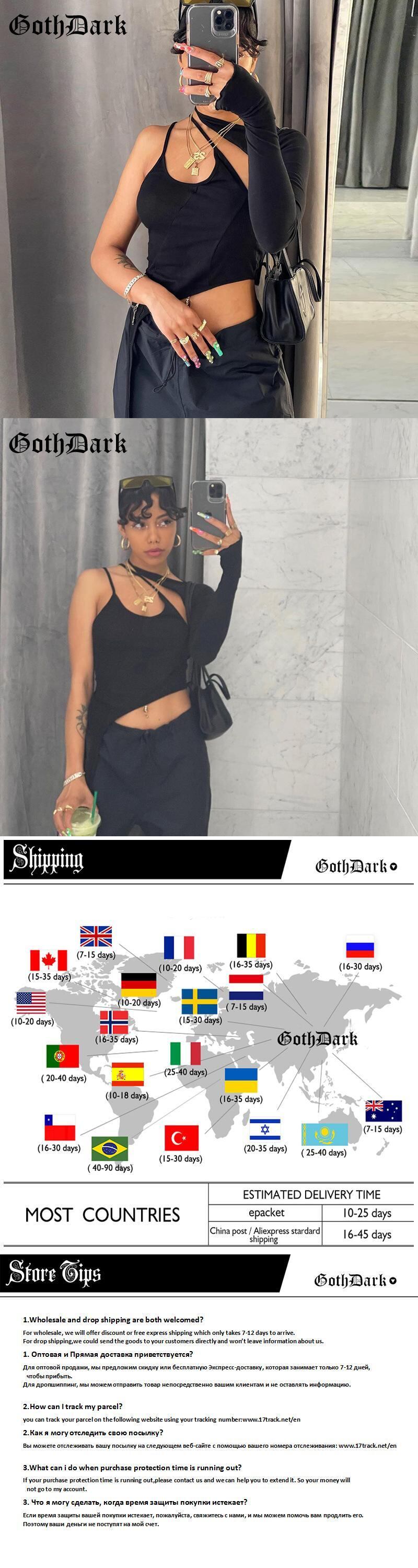 送料無料 ゴスダーク Y2k グランジ黒パッチワーク女性キャミソールパンクワンショルダースキニー Tシャツゴシック包帯ヒップホップ不規則なセクシーな 2 個セット ブラック AE155588729195635059