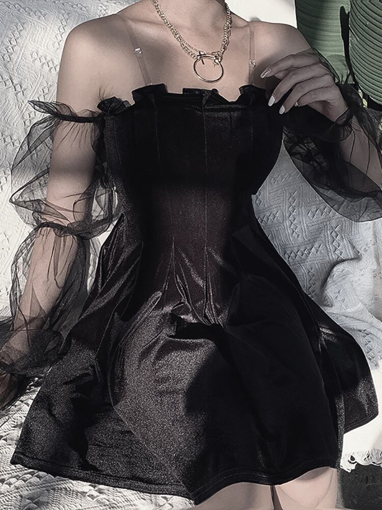 送料無料 ゴスダークメッシュヴィンテージゴシックドレスe美的透明ストラッププリーツドレスシックなパンクヒップホップグランジエモオルタナティブ服 ビンテージ AE155588793468225882