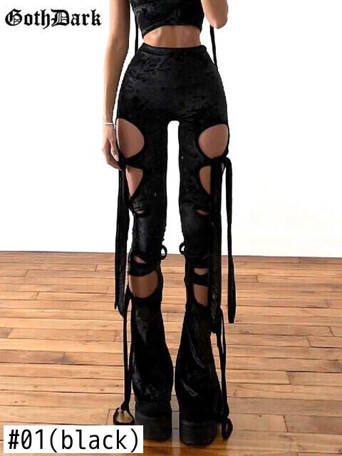 送料無料 ゴスダークベルベット中空アウトモールゴシックペンシルパンツグランジ美的パンクセクシーなウエストパンツ Y2k 包帯女性 Alt ボトム AE155588755495878017