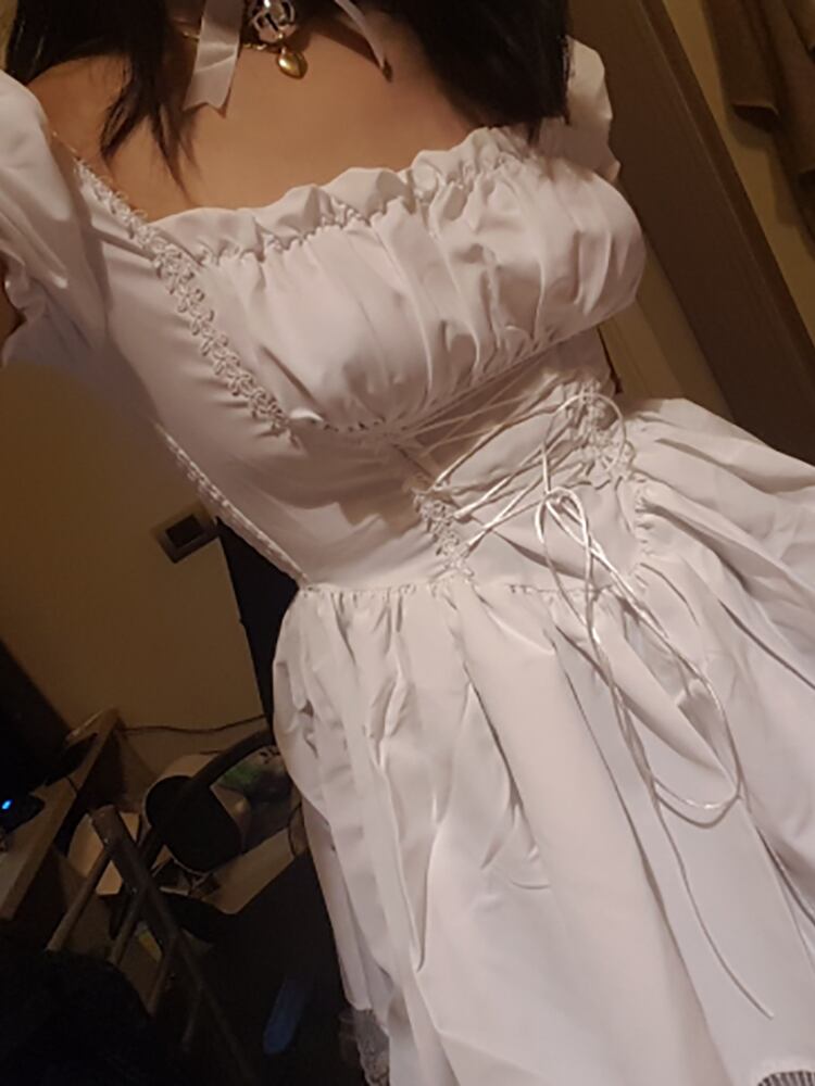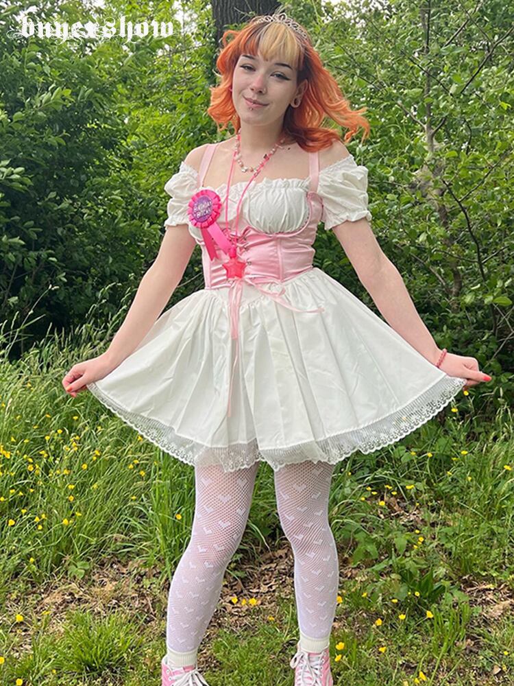送料無料 ゴスダークモールゴシック包帯原宿白いドレスロリータかわいい黒人女性のセクシーなミニドレスレースパフスリーブボディコンパーティーウェア ホワイト ブラック AE155588713303384709
