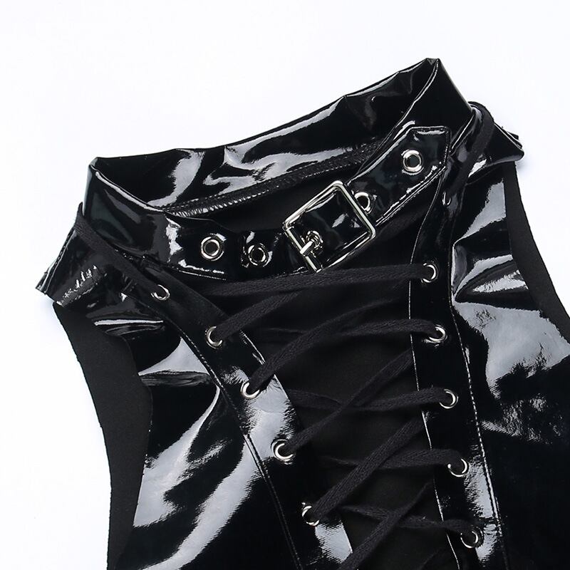 送料無料 ゴスダークモールゴシックパンクフェイク Pu ボディコンクロップトップス女性グランジ中空アウトセクシーなタンクトップタイアップバックルホルター Alt 服 2023 ファー AE15558873081248618