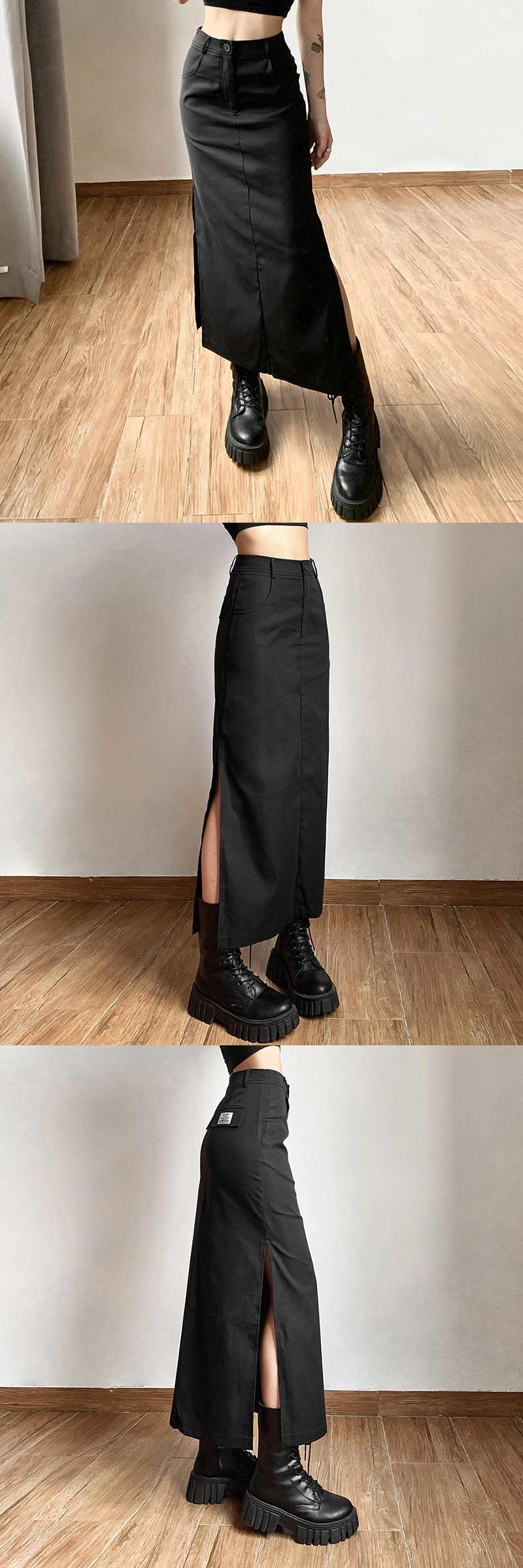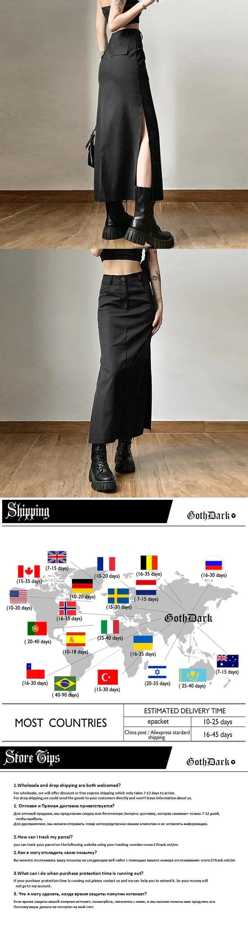 送料無料 ゴスダークグランジタグ分割女性ミディスカートモールゴシックパンク上げるスリムロングスカート Y2k セクシーなストリート 2023 AE155588710786575666