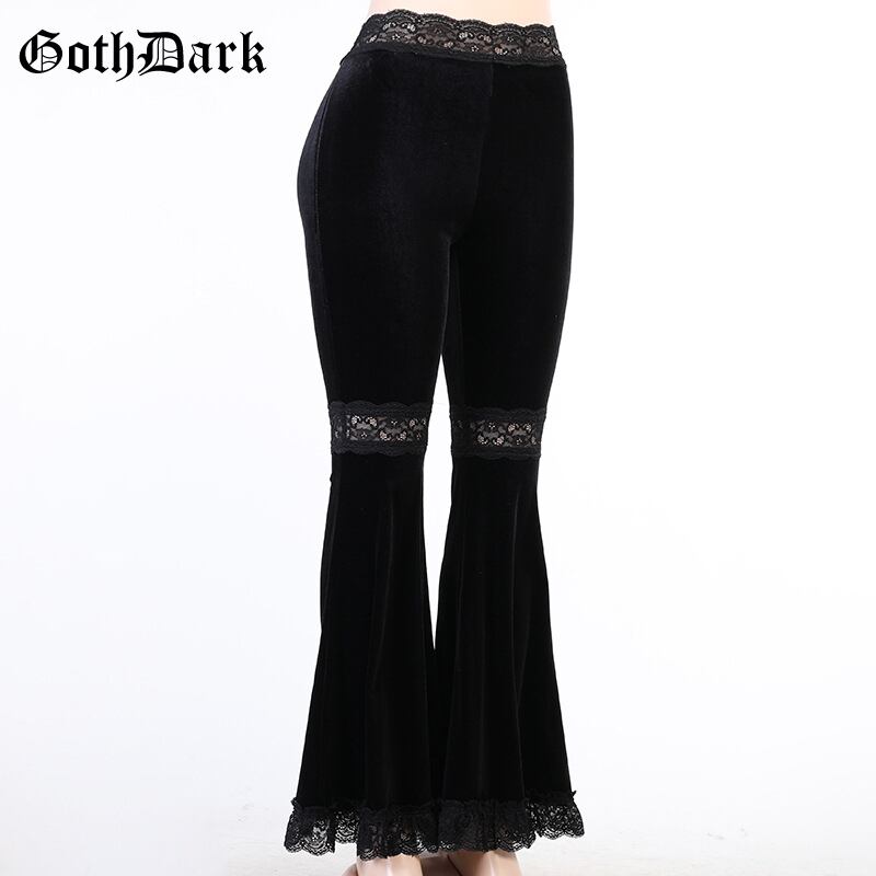 送料無料 ゴスダークベルベットゴシックレースパッチワークフレアパンツロマンチックなゴスヴィンテージグランジスキニー女性ズボンウエストストリートエモ ビンテージ AE155588753082536758