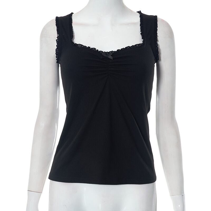 送料無料 ゴスダークシャーリングメッシュゴシック薄手のセクシーなタンクトップグランジ Y2k スクエアネックボディコンクロップトップノースリーブ女性夏服 サマー 夏物 スクウェア AE155588726209602664 | 女性の為の通販サイト-fashion navi