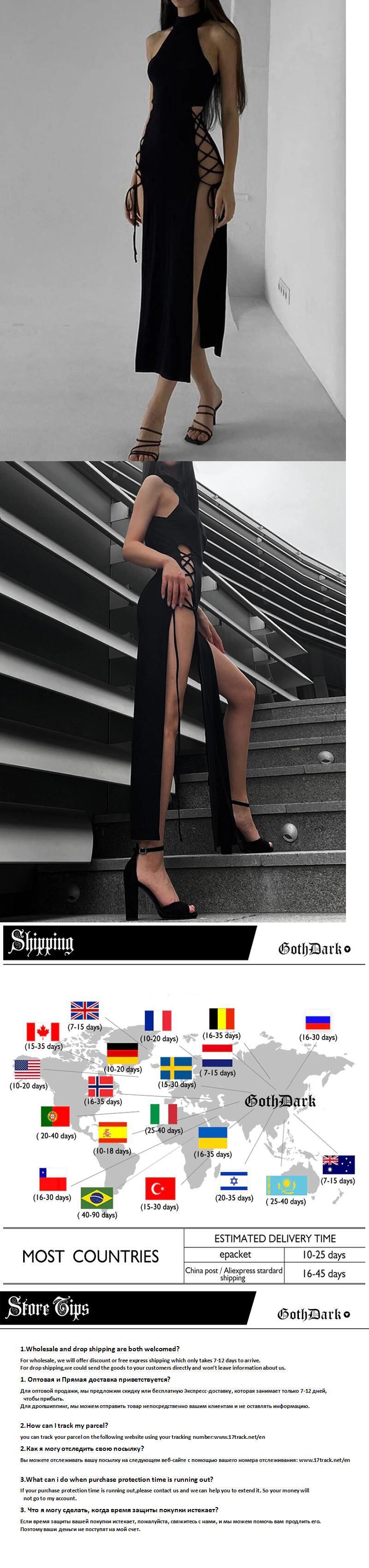 送料無料 ゴスダークコスプレスプリットセクシーな包帯女性ドレス Y2K モールゴシックホルタースリムミディドレス黒グランジスタイルオルトパーティーウェア ブラック AE155588712656861347