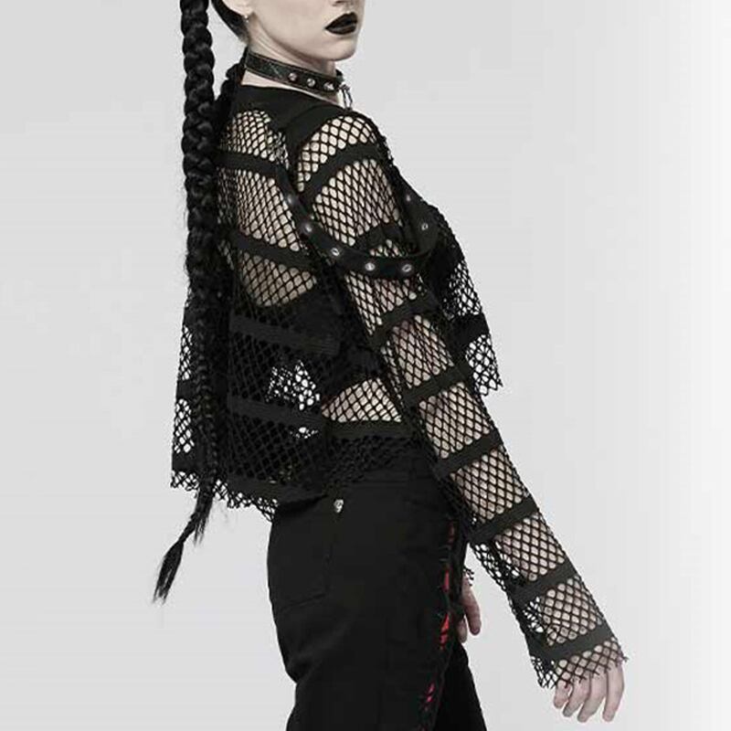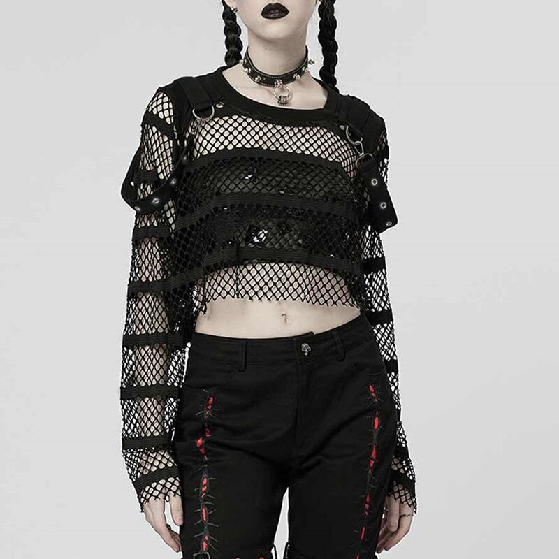 送料無料 ゴスダークパンク網タイツパッチワーク女性 Tシャツモールゴシック Transprent セクシーなクロップトップスグランジ美的ストリートエモ Alt 服 AE155588775578297363