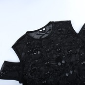 送料無料 ゴスダーク網タイツスカルオープンショルダーエモオルト Tシャツグランジモールゴシックアイレットセクシーな女性クロップトップス Transprent 半袖 Tシャツ ショート ハーフスリーブ AE155588717710886097 | 女性の為の通販サイト-fashion navi