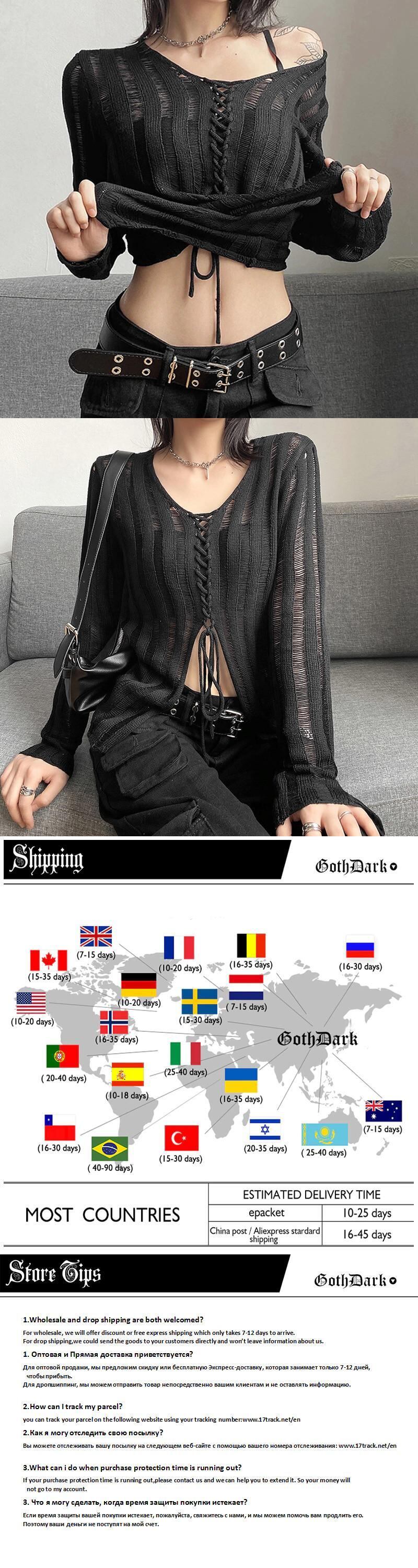 送料無料 ゴスダークモールゴシックシースルー包帯ブラウスグランジ黒のセクシーなニットウェア Tシャツ Y2k 長袖ストリート女性トップス ロング ブラック AE155588723894970778 | 女性の為の通販サイト-fashion navi