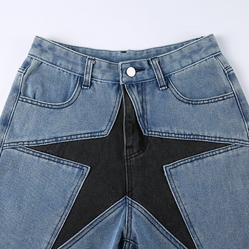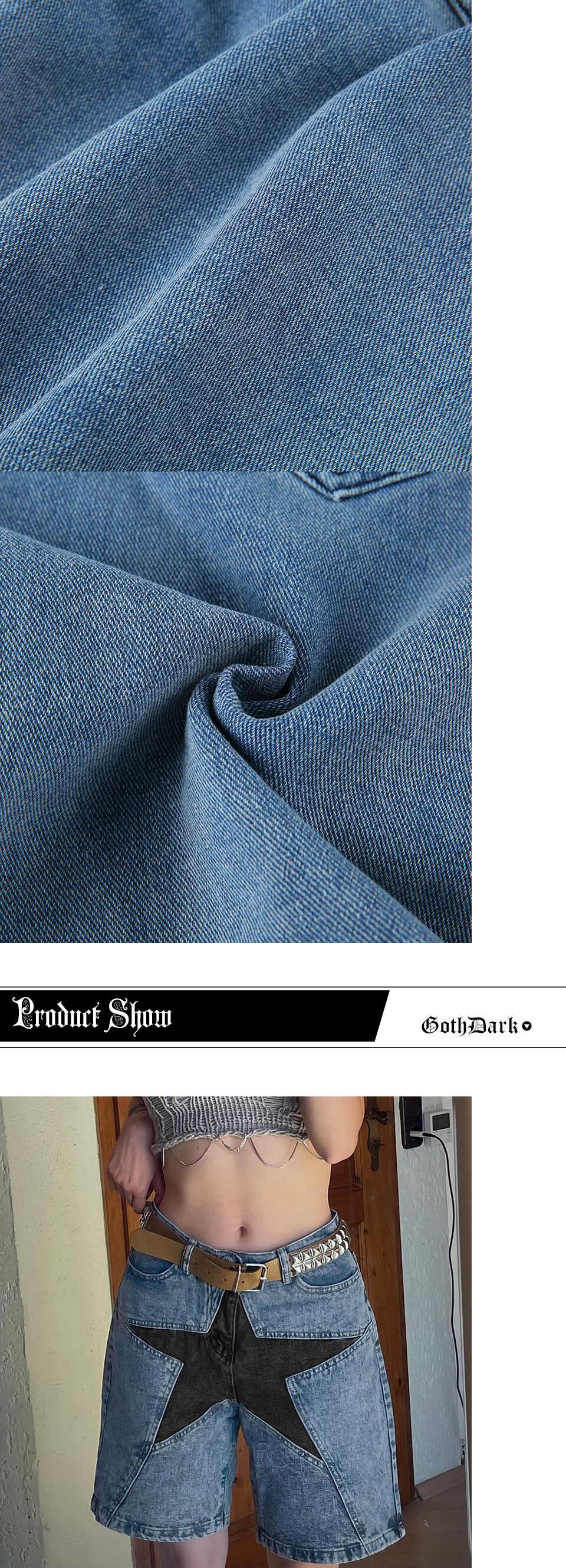 送料無料 ゴスダーク 90 年代ストリートヴィンテージ女性バミューダパンツゴシック五芒星ウエストデニムショートパンツ古いカーゴジーンズボトムス ショーツ ブルマー ビンテージ AE155588733002111083