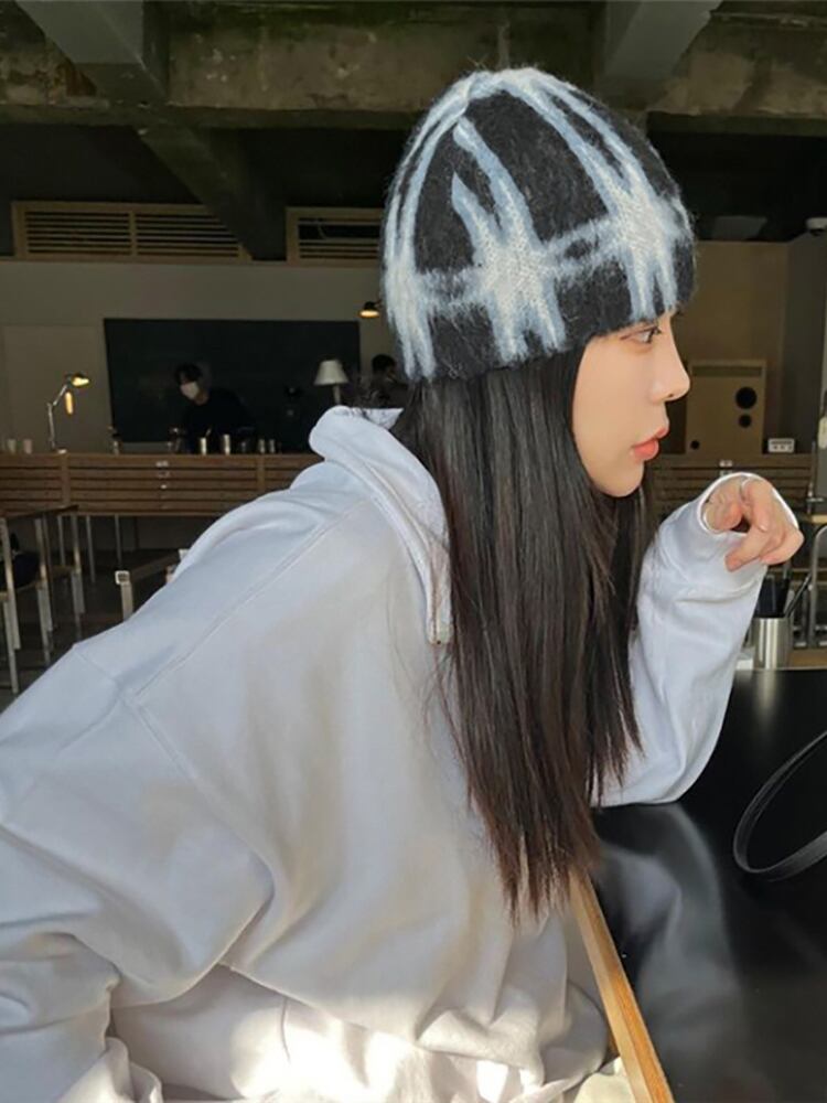 送料無料 ゴスダーク冬暖かいユニセックスビーニーキャップ Y2k ニットプリント女性 Skullies 帽子原宿秋スカルキャップ かわいい オータム 秋物 ウィンター 冬物 AE1555887383683444