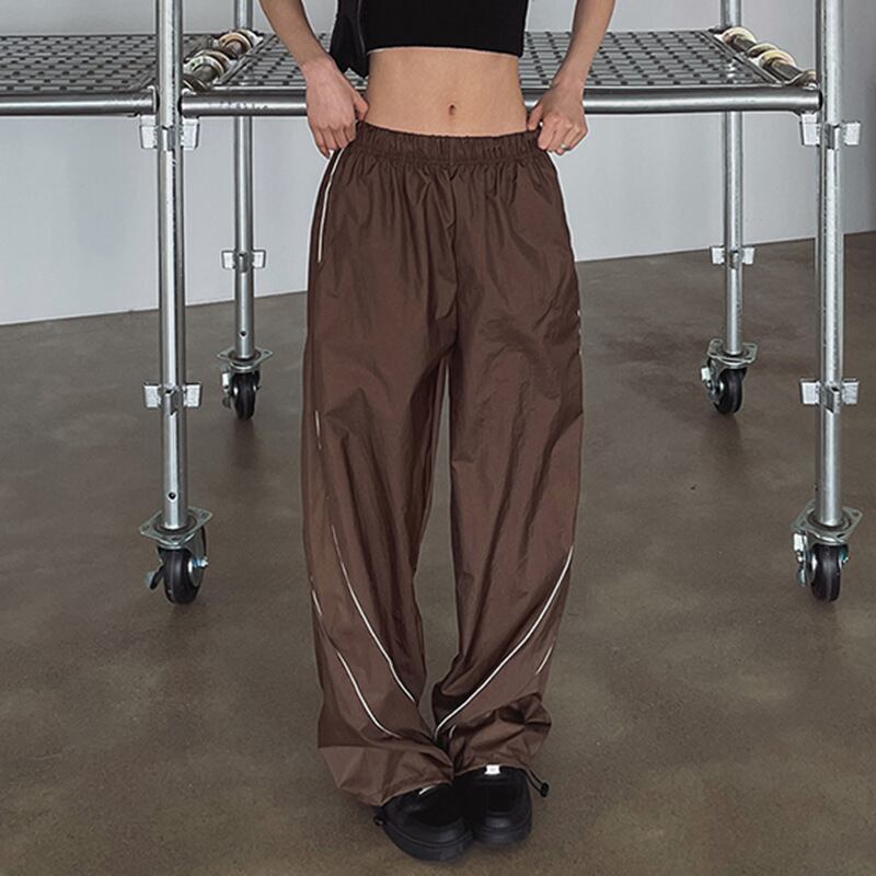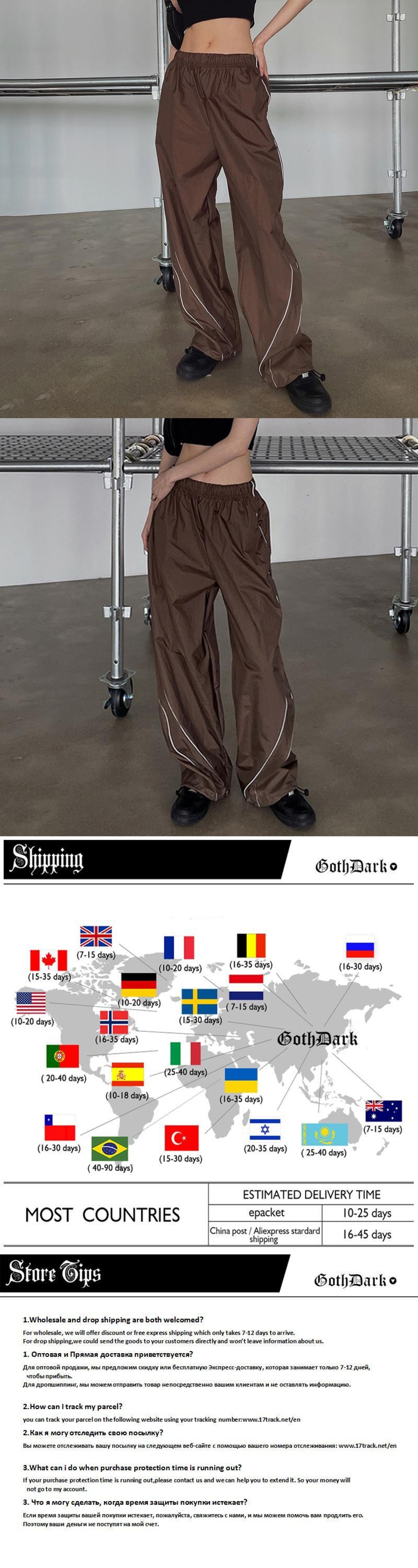 送料無料 ゴスダーク巾着 Y2k ストリートウェアパラシュートパンツサイバーゴシック反射サイドパンツグランジだぶだぶワイドレッグボトムス ワイドパンツ AE15558873928193622