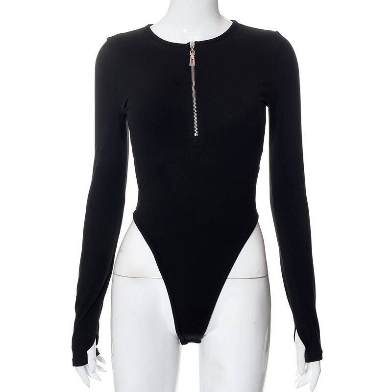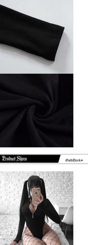 送料無料 ゴスダークモールゴシックジップアップ基本女性ボディスーツグランジ長袖パンク黒トップスボディコンコスプレストリート服 ロング ブラック AE155588754230237019