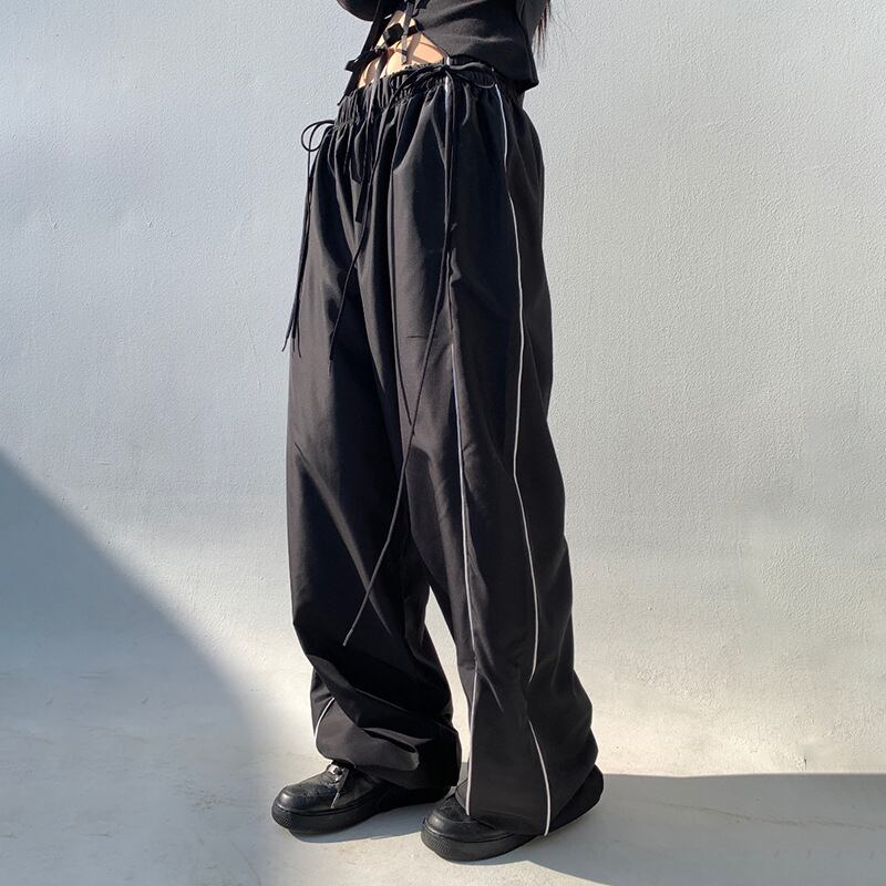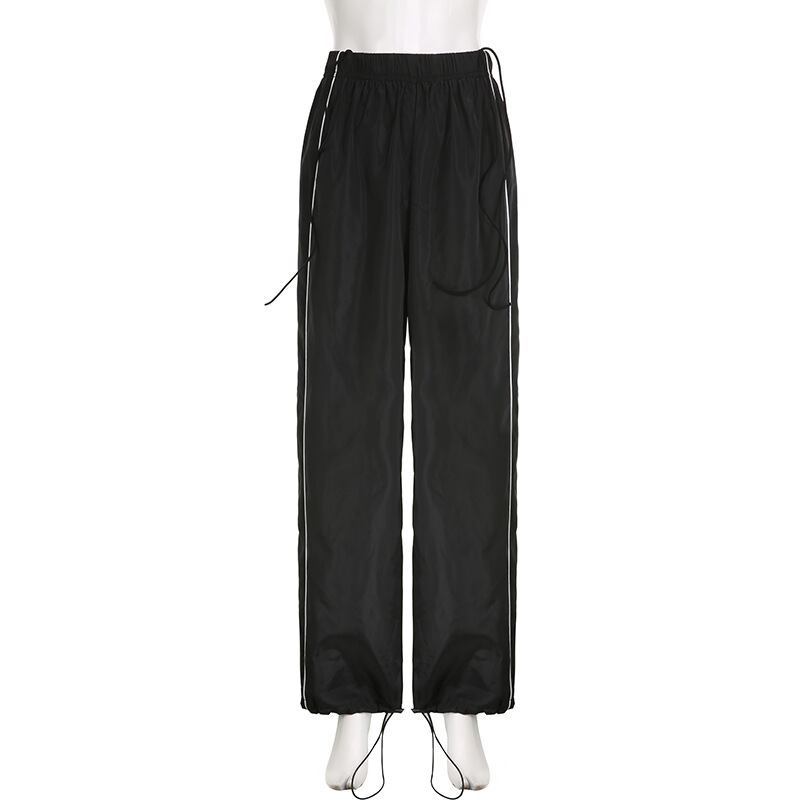 送料無料 ゴスダークストリートサイドストライプ Y2k パンクカーゴパンツサイバーゴシックだぶだぶ巾着ズボンスポーティパラシュート 90 年代ボトム AE155588779090246167