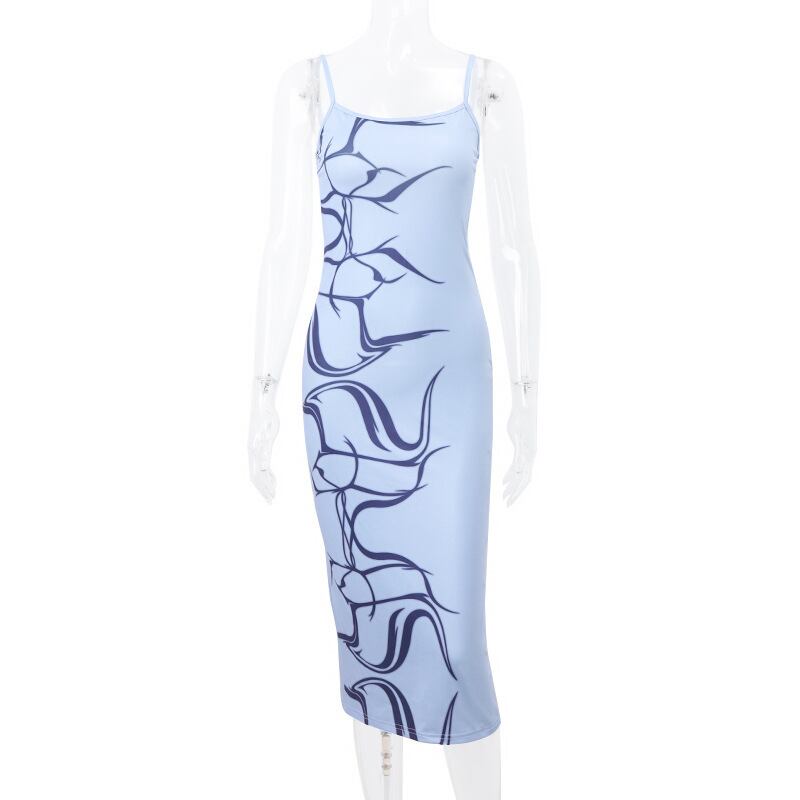 送料無料 ゴスダークサイバー Y2k プリントセクシーなミディドレスゴシックパンクスリングスリム女性 Partwear 背中の開いた夏のロングペンシルドレス サマー 夏物 AE15558879514535750
