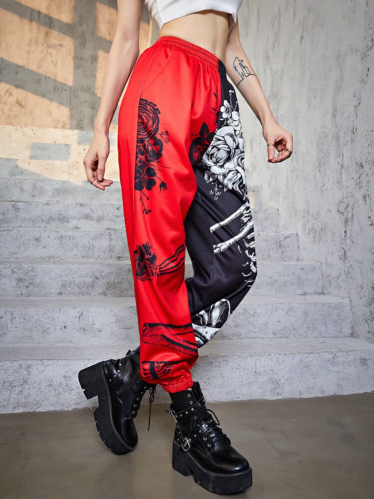 送料無料 ゴスダークモールゴシック美的カラーブロックペンシルパンツグランジプリントパンクウエストヒップホップパンツストリートズボン AE155588792357921985 | 女性の為の通販サイト-fashion navi
