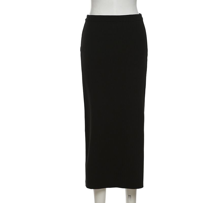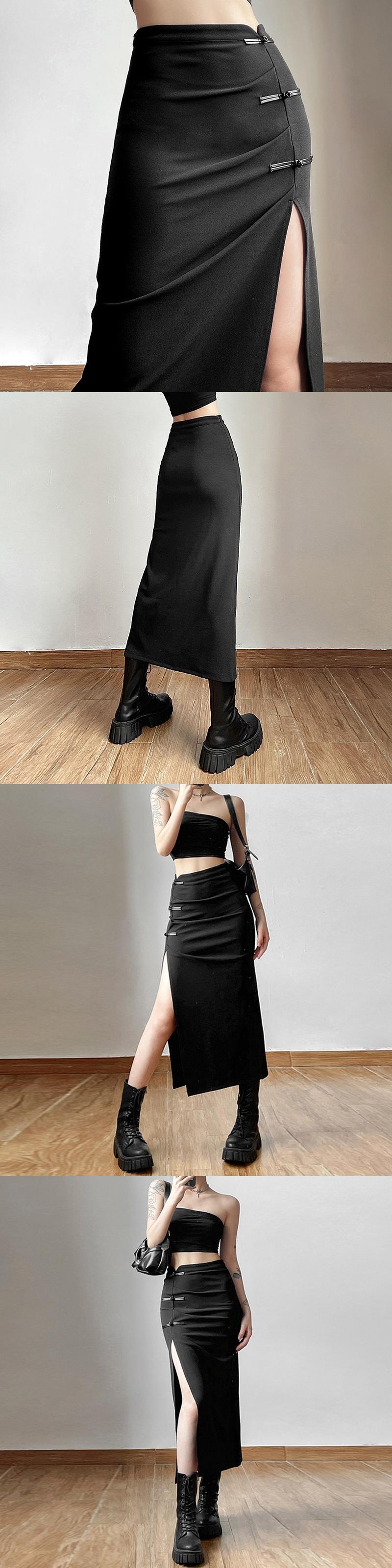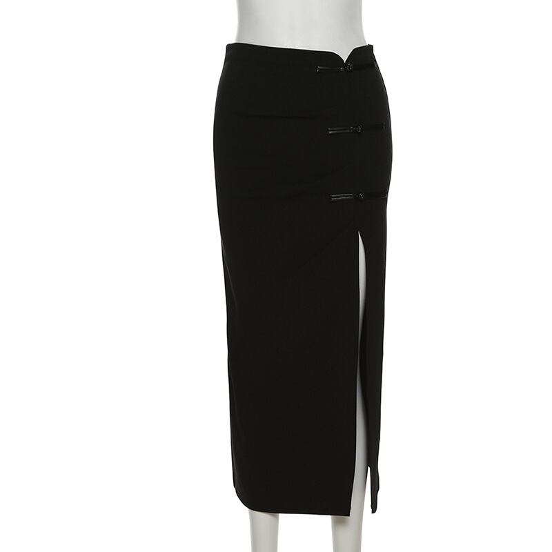 送料無料 ゴスダークストリート黒 Y2k カーゴミディスカートグランジゴシック分割セクシーなウエストスカート女性秋ボトムス ブラック AE155588797171026527