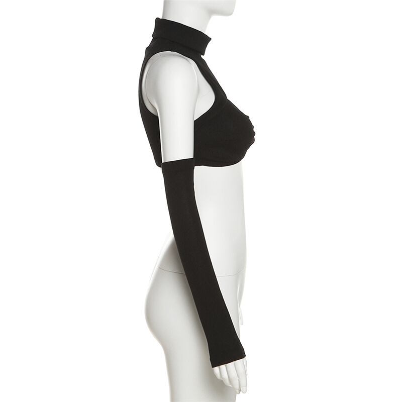 送料無料 ゴスダークサイバー Y2k パンク中空アウトセクシーなタンクトップゴシックグランジタートルネック女性クロップトップシャーリンググローブスリーブストリートベスト AE155588793580143938