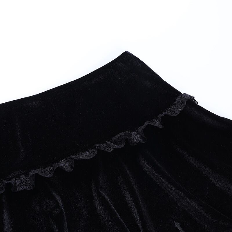 送料無料 ゴスダークモールゴシック美的ベルベットプリーツミニスカート女性ヴィンテージ原宿エモ Alt 服ウエストレースフリルスカート ラッフル かわいい ビンテージ AE15558879634095576