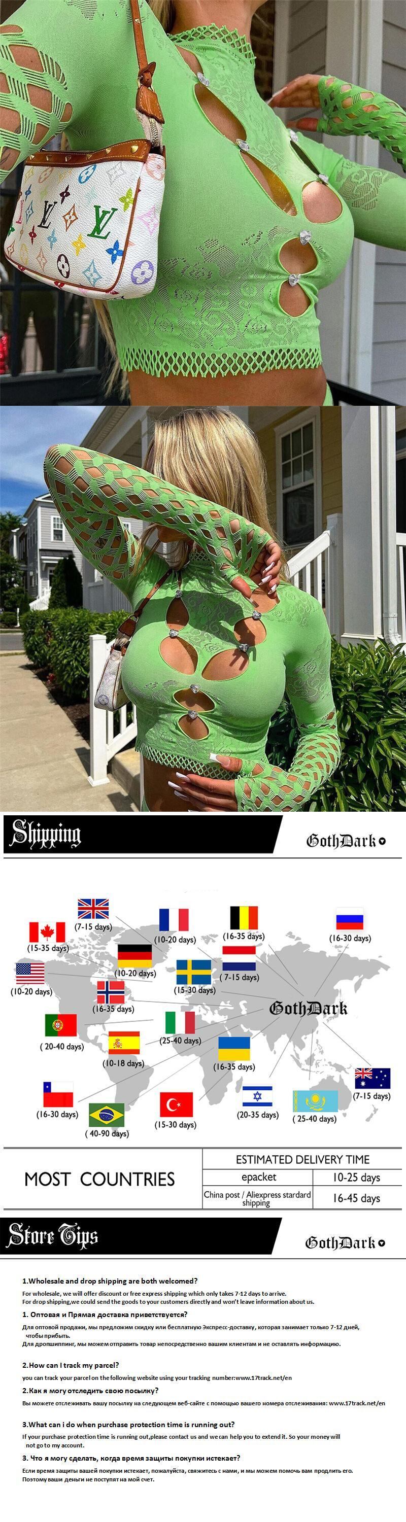 送料無料 ゴスダークサイバー Y2k 中空アウトセクシーな Tシャツメッシュグランジパンク長袖女性クロップトップスゴシック薄手のモックネックスリムストリート ロング AE155588790422707192