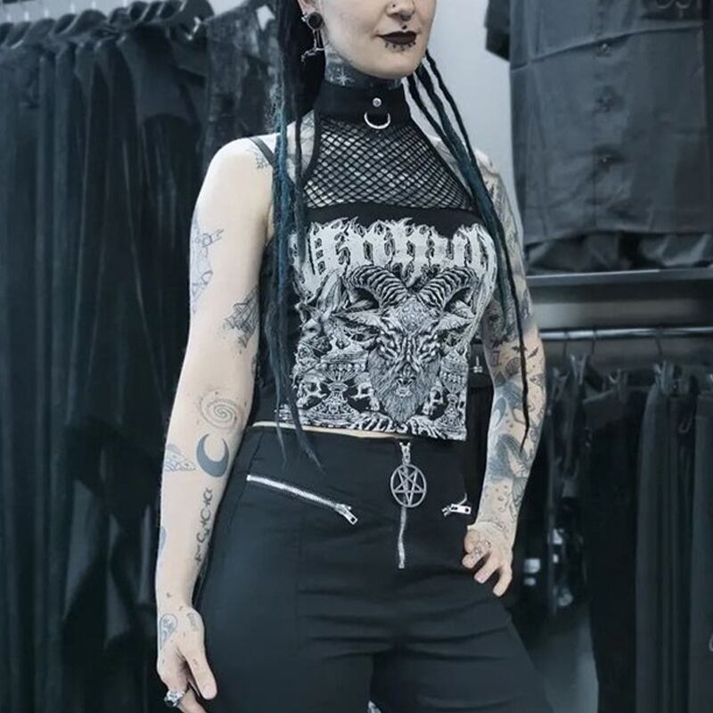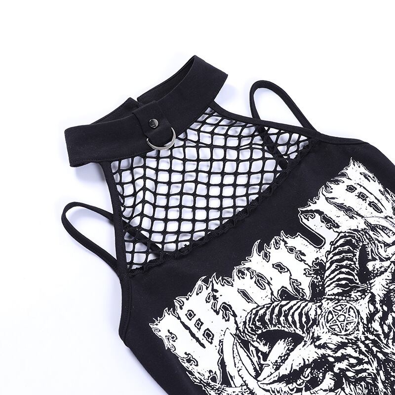 送料無料 ゴス ダーク フィッシュネット スプライス モール ゴシック クロップ トップス グランジ 美的 バックレス セクシー キャミソール パンク エモ Alt 服 ストリート ホルター トップ AE155588728186095409
