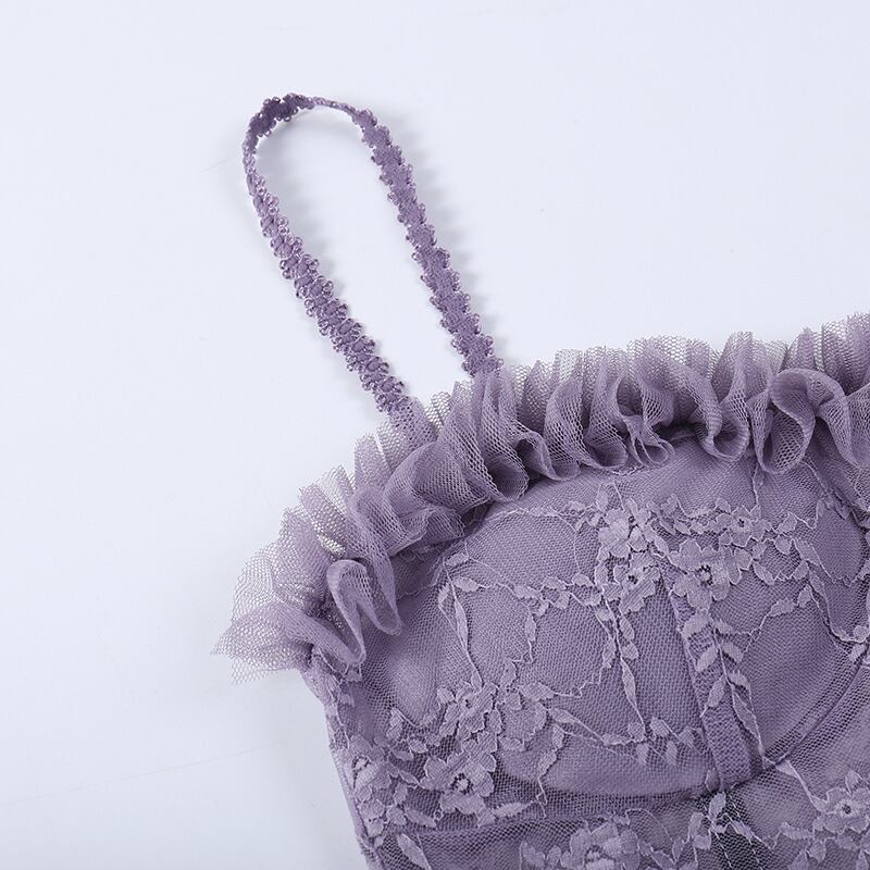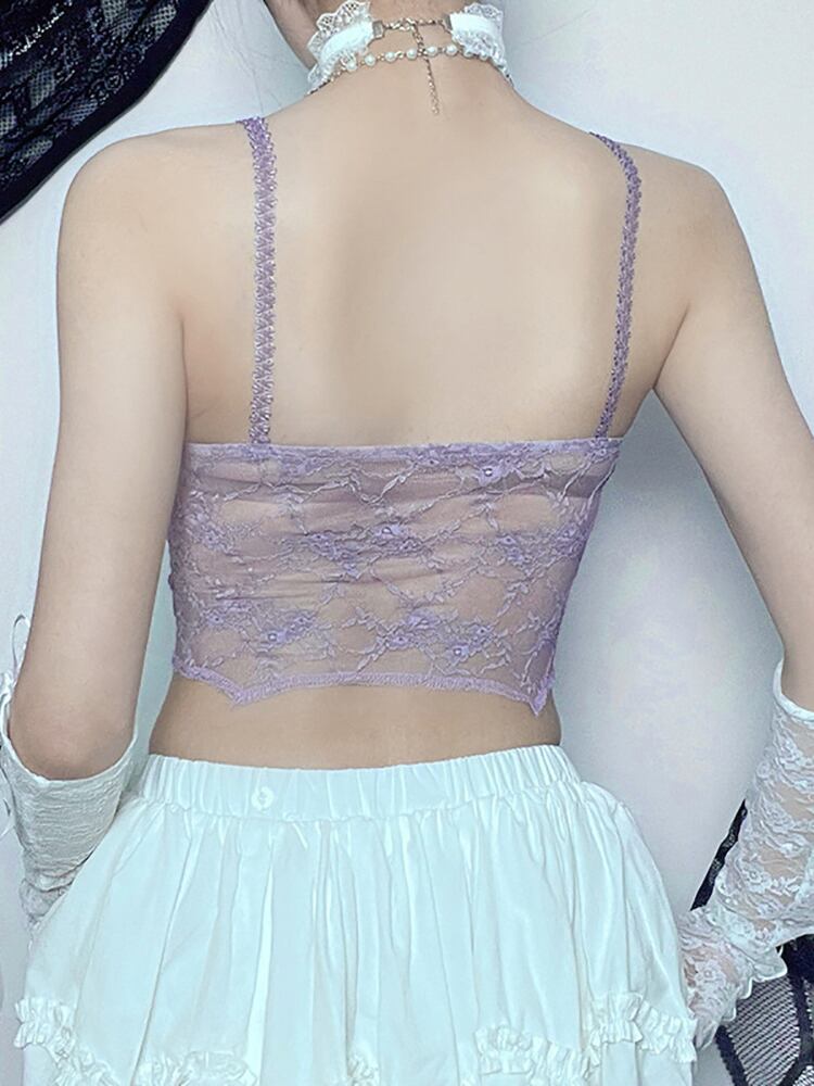 送料無料 ゴスダーク Y2k シースルーセクシーなレースの女性キャミソールロリータゴシック背中の開いたセクシーなフリルクロップトップスコケット美的ストリート ラッフル AE155588738281076656