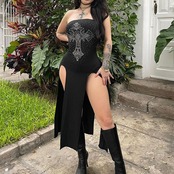送料無料 ゴスダーククロスラインストーンパンクセクシーなミディドレスモールゴシックスプリットパーティーチューブドレスグランジスタイルの女性の夏のaltクラブウェア サマー 夏物 AE155588782220278543
