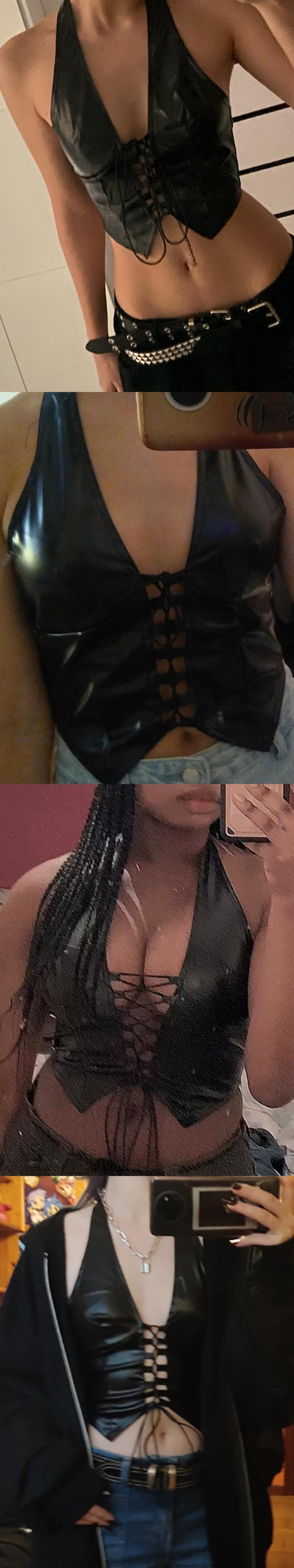 送料無料 ゴスダークグランジ Pu 黒レースアップゴシックホルタートップスパンクフェイクレザー女性中空アウトセクシーなキャミソールストリートクロップトップス ブラック ファー AE155588797981190007 | 女性の為の通販サイト-fashion navi
