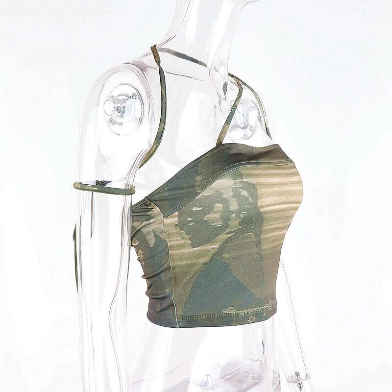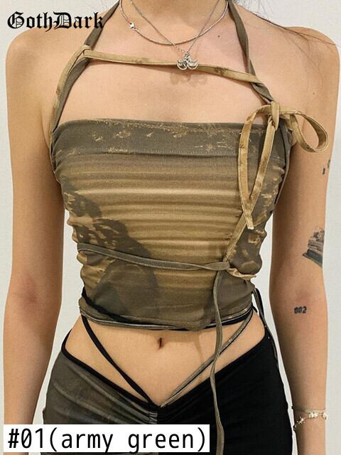 送料無料 ゴスダークパンクゴシックキャミソールグランジレースアップオフショルダー女性クロップトップスヒップホップボディコンノースリーブヴィンテージプリント90sストリート ビンテージ AE155588774752409414