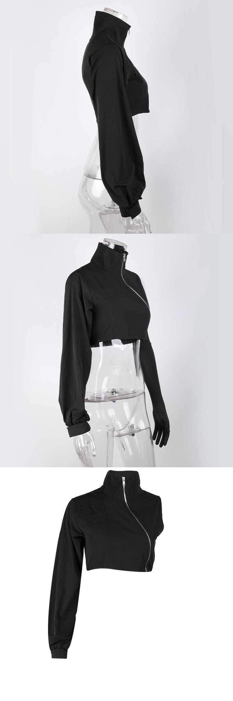 送料無料 ゴスダークグランジブラックパンク不規則なジップアップジャケットテックウェアモールゴシックネオングリーンクロップトップスタートルネックシックスリーブストリート AE155588797943321594