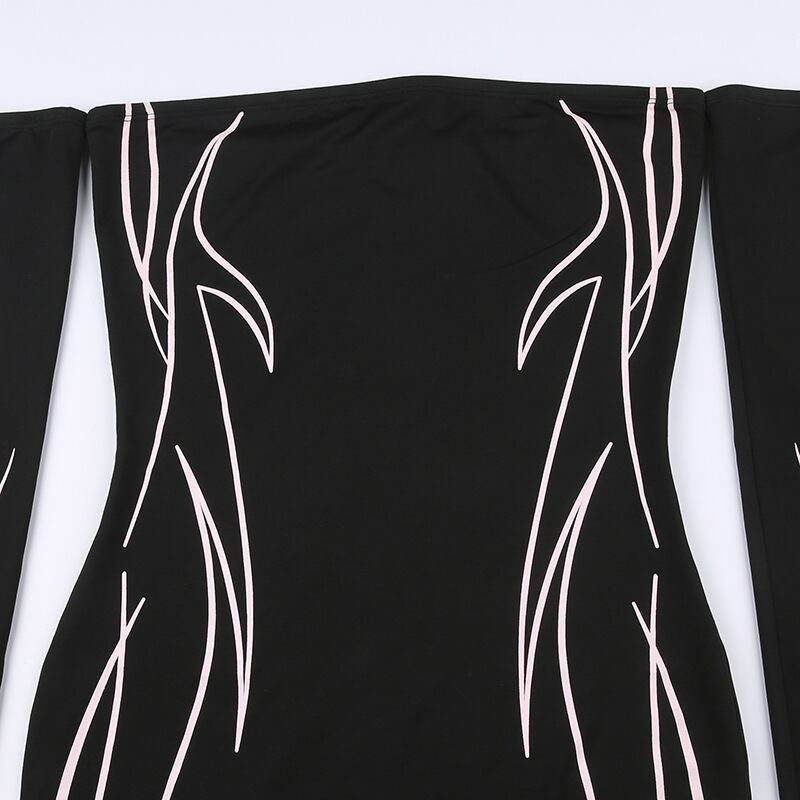 送料無料 ゴスダークサイバーゴシック Techwear プリント Y2k パーティードレスパンクオフショルダーセクシーなバイカーミニドレス女性フルスリーブストリート AE155588796579290259