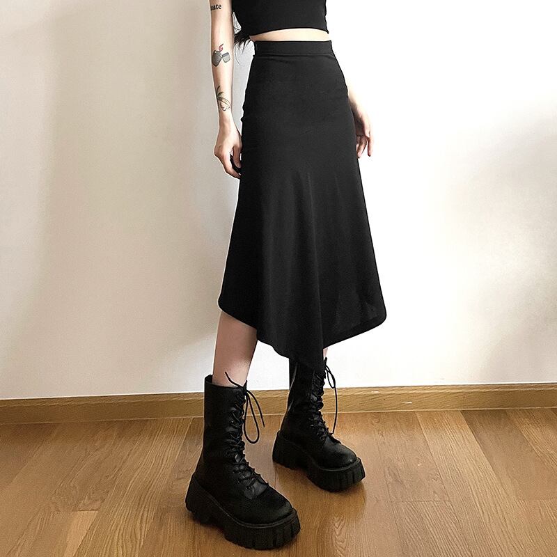 送料無料 ゴスダーク尖った裾パンクスタイル黒ミディスカートモールゴシックグランジ美的Aラインスカートウエストストリートalt ブラック AE155588788235211393