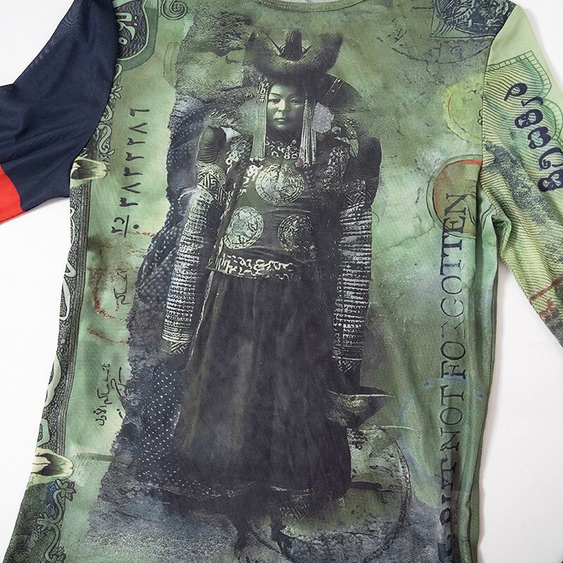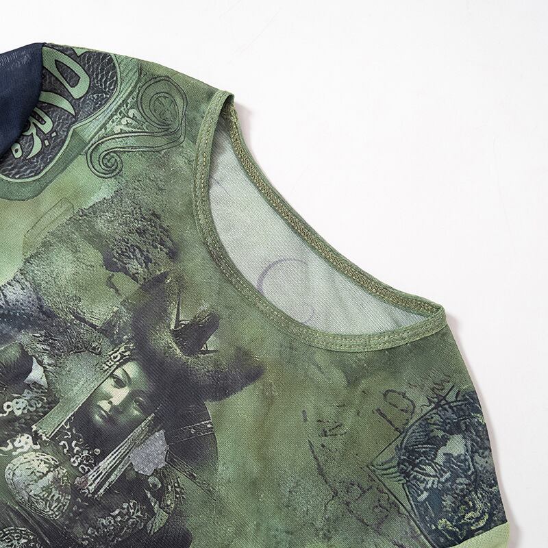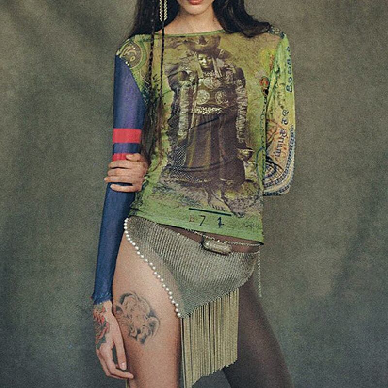 送料無料 ゴスダークヴィンテージプリントサイバー Y2k メッシュ Tシャツゴシックカラーブロックセクシーな薄手のクロップトップスグランジ長袖ボディコンストリート ロング ビンテージ AE155588731576236032