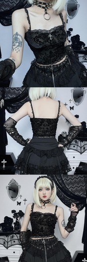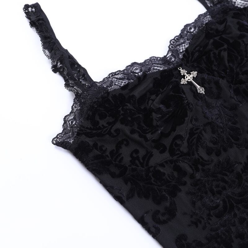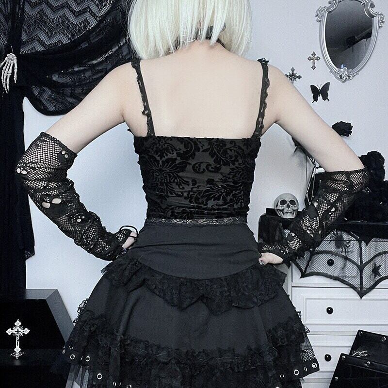 送料無料 ゴスダークロマンチックモールゴシックヴィンテージセクシーなキャミソールグランジ美的薄手の傷クロップトップスレーストリムベルベット女性 Alt 服 ビンテージ AE155588782641401405