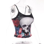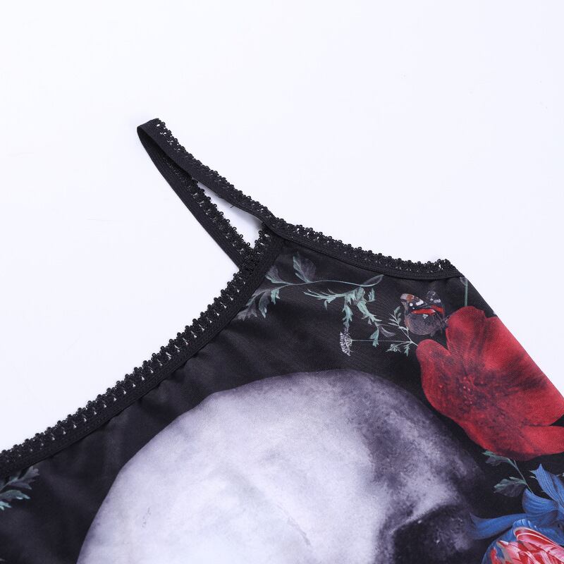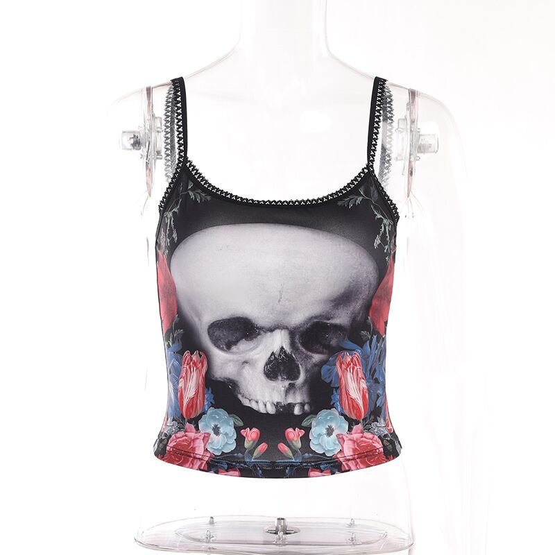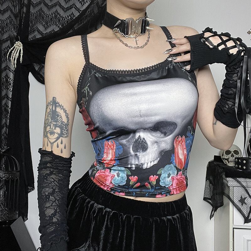 送料無料 ゴスダークスカルグラフィックモールゴシック美的キャミソールエモグランジパンクスタイルセクシーな女性クロップトップスレーストリムストリートalt AE155588758760132485