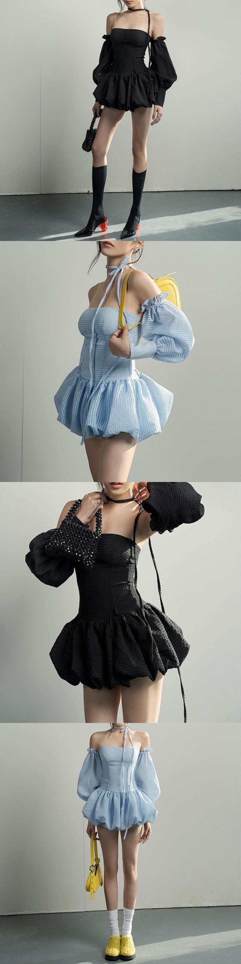 送料無料 ゴスダークオフショルダー Y2k パーティーミニドレスセクシーな背中の開いたゴシックショーツドレス A ライン手袋スリーブクラブ服 ブルマー Aライン AE155588735080302601