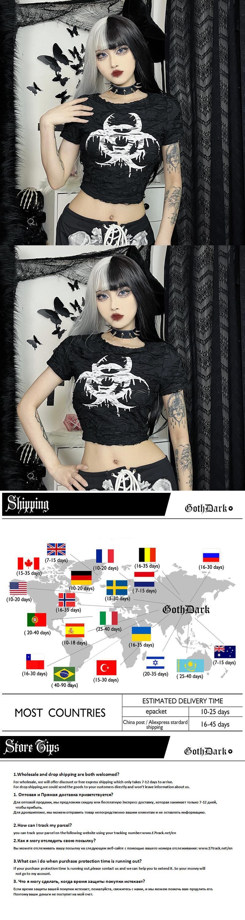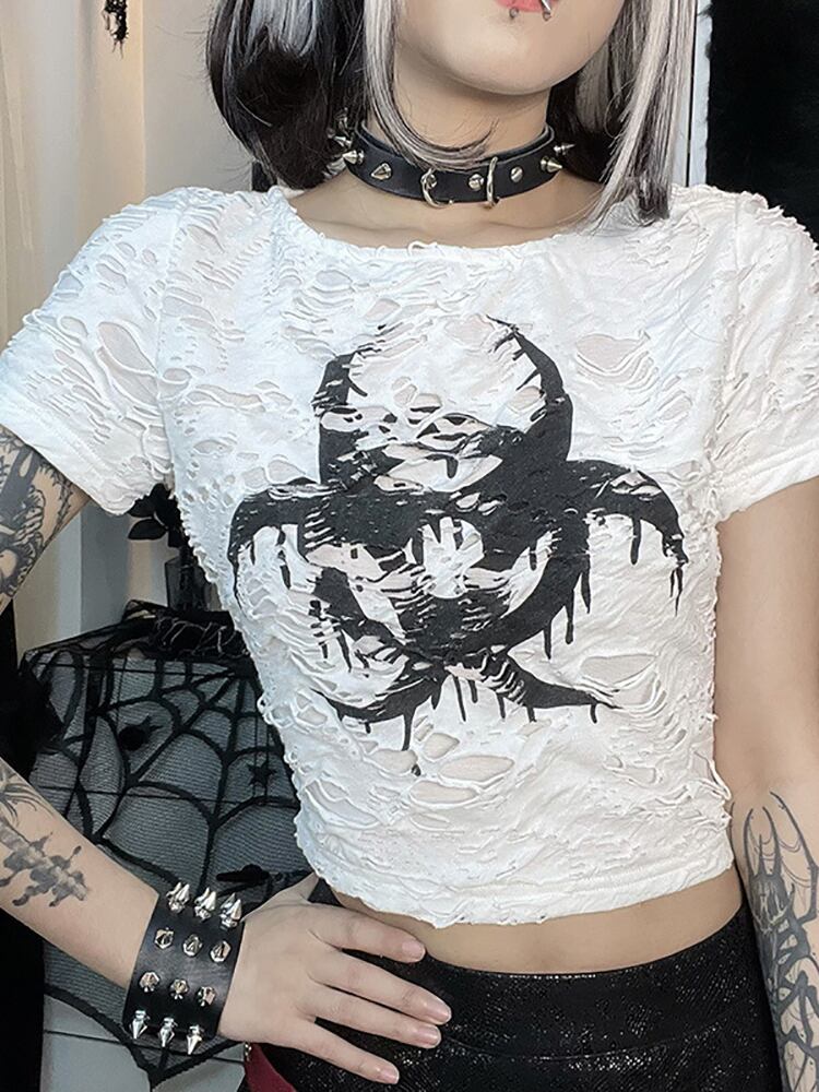送料無料 ゴスダークゴシック美的女性グラフィック Tシャツ中空アウトヴィンテージグランジクロップトップスパンクスキニー O ネックエモストリート Oネック ビンテージ AE15558878858260919