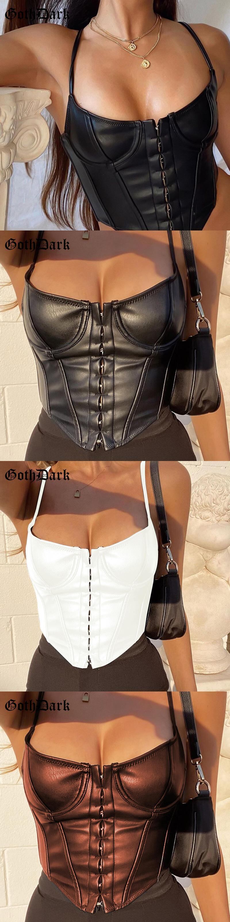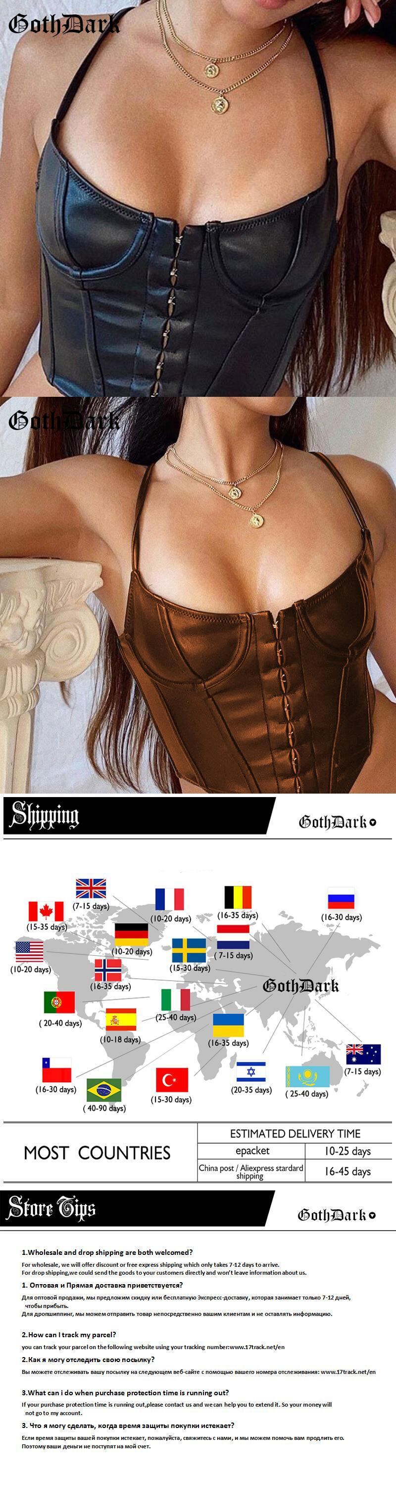 送料無料 ゴスダーク Pu グランジゴシックパンク黒コルセット女性ボディコンフェイクレザービスチェスパゲッティストラップセクシーな代替服クロップ ブラック ファー AE155588720718145255