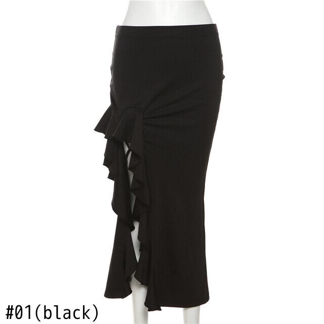 送料無料 ゴスダークスプリットフリルサイド Y2k マキシスカートモールゴシック包帯セクシーなパーティーウェア女性グランジウエストロングスカート ラッフル AE155588763551713005