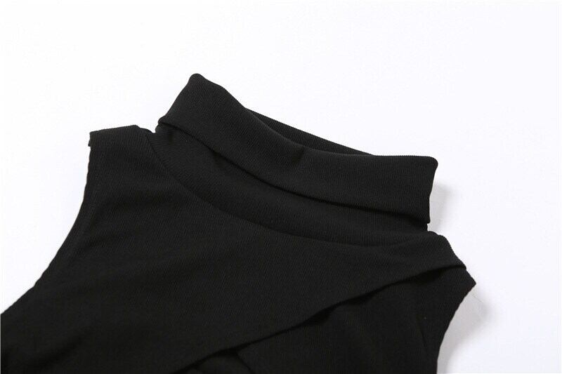送料無料 ゴスダーク Techwear サイバー Y2k 中空アウトタンクトップパンクゴシックタートルネック女性のセクシーなクロップトップとグローブスリーブスキニーストリート AE155588751174353006