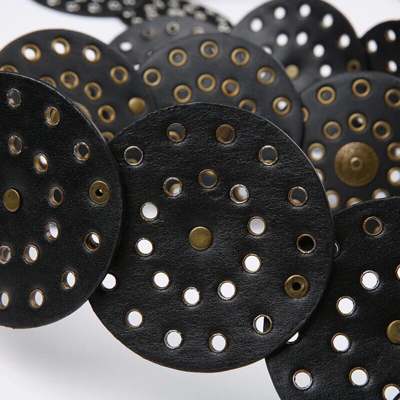 送料無料 ゴスダークラウンドディスクフェイクレザー自由奔放に生きるワイドベルトヴィンテージグランジ Y2k 女性ウエストバンドコンチョアイレットウエストワイドチェーンベルト ハーネス ファー ビンテージ AE15558878828776899