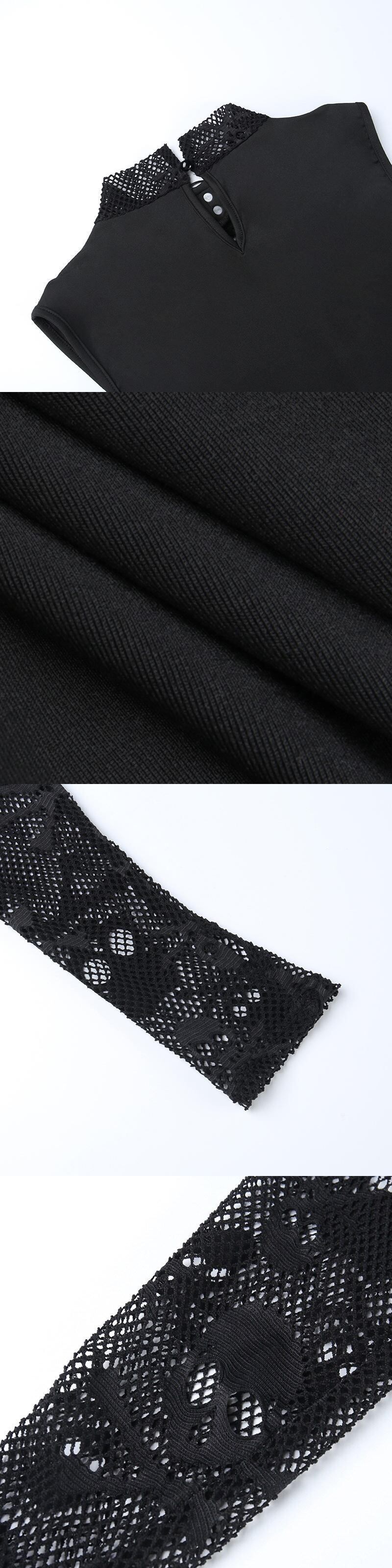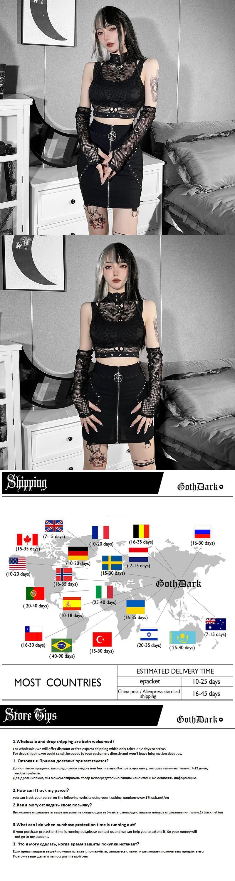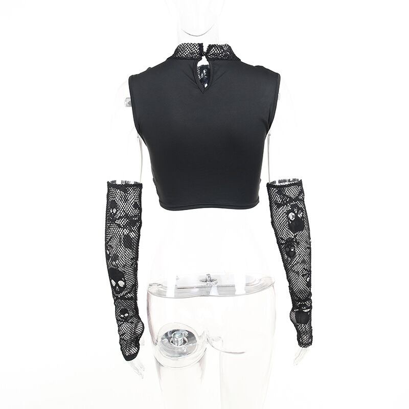 送料無料 ゴスダークスカル網タイモールゴシック女性タンクトップグランジ美的パンクブラッククロップトップとグローブE-エモ代替ベスト AE155588715041176656
