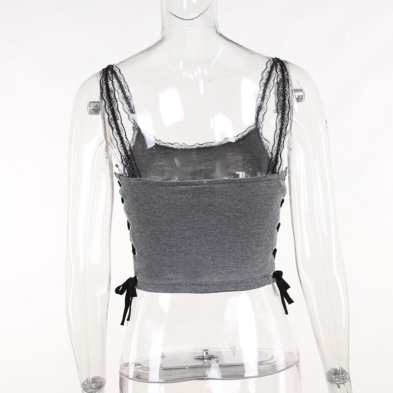 送料無料 ゴスダーク包帯モールゴシック女性クロップトップス妖精グランジ Y2k 蛾プリントレーストリムキャミソールセクシーな背中の開いた中空アウトストリート AE155588799572026853