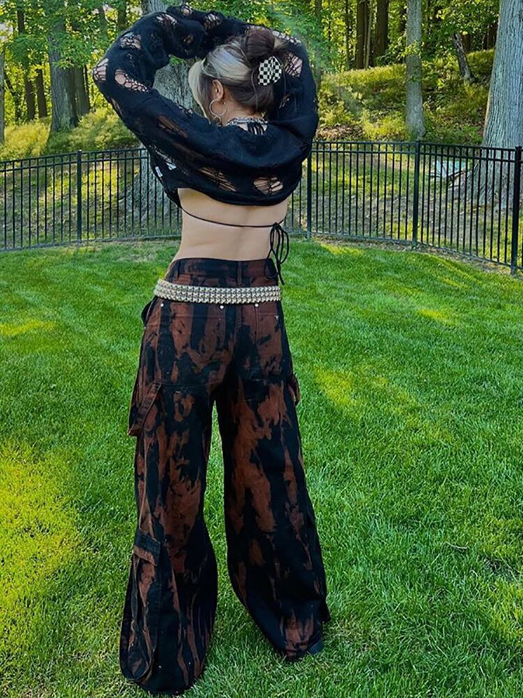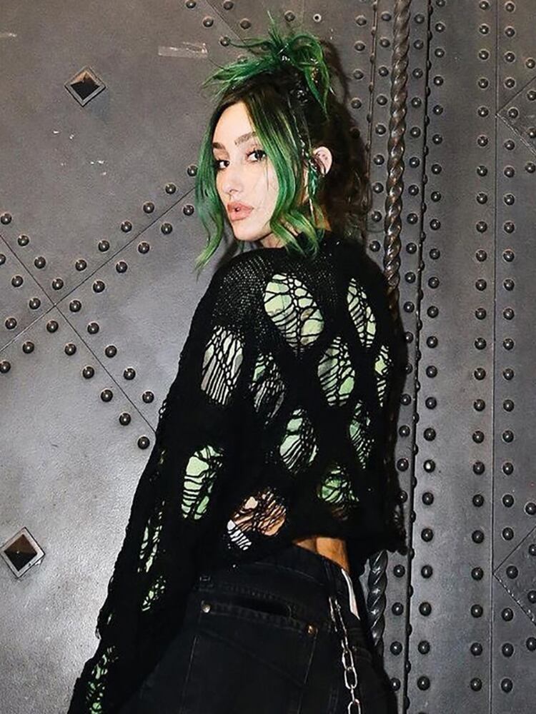 送料無料 ゴスダーク Y2k パンク中空アウトニットゴシックセクシーなプルオーバーグランジ E-長袖ルーズクロップセーターオルト夏ストリート ロング サマー 夏物 AE15558875442235537