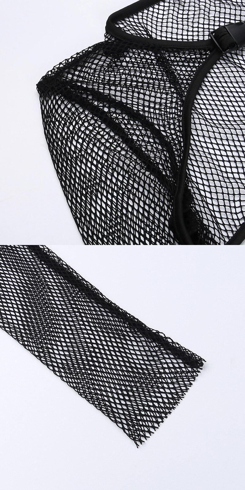 送料無料 ゴスダーク包帯ゴシック美的チューブトップ + 網目バックルシュラッグトップグランジフェイク Pu セクシーなクロップラップ胸長袖 2 個セット ロング ファー AE155588711698230997