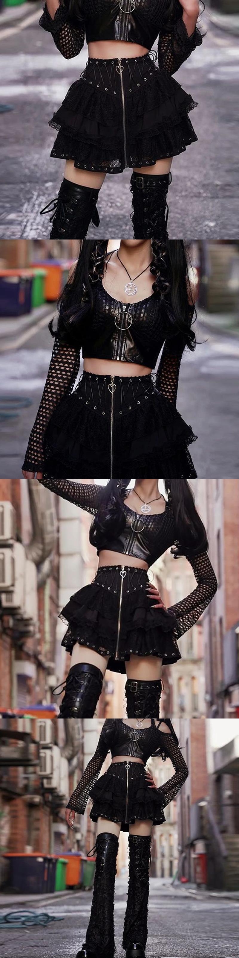 送料無料 ゴスダークレースパッチワークモールゴシックプリーツスカートグランジ美的パンク包帯ジップアップミニスカート女性ストリート Alt 服 AE155588720190305056