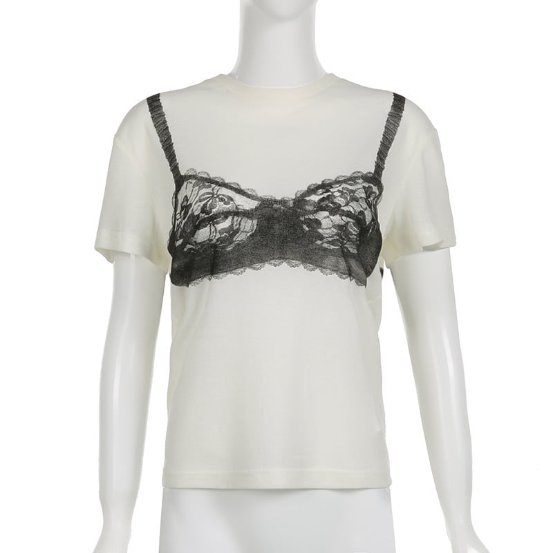 送料無料 ゴスダークブラジャープリントゴシックルーズ女性 Tシャツ Y2k ガール半袖白のセクシーなトップス原宿ストリート夏 Tシャツ ショート ホワイト ハーフスリーブ かわいい サマー 夏物 AE155588799438661935