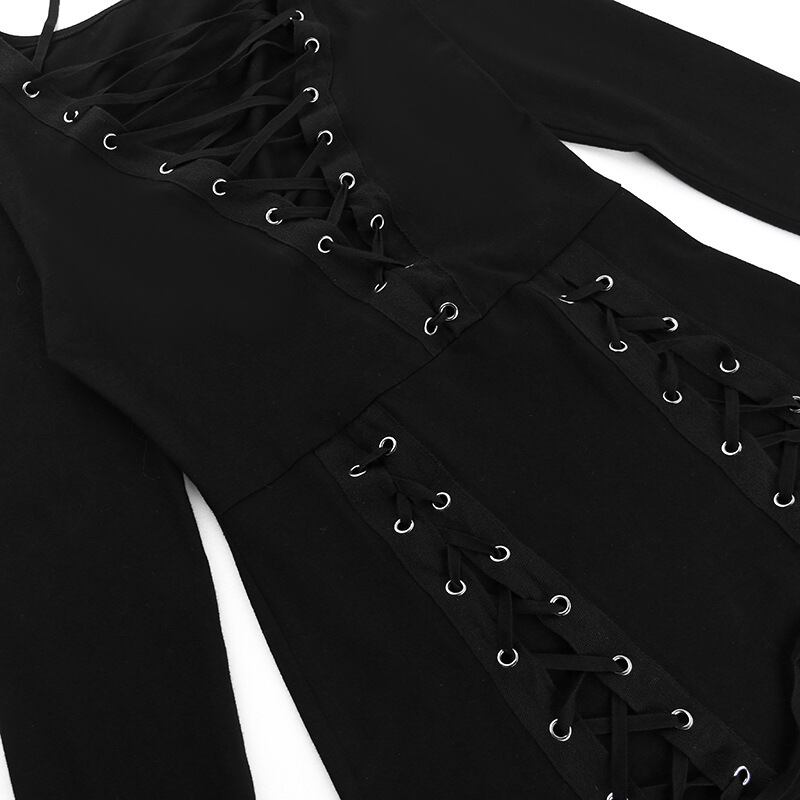 送料無料 ゴスダーク包帯スプリットモールゴシックミニドレスグランジ美的長袖パーティーウェアパンクボディコンディープ V ネックオルタナティブ衣装 ロング Vネック AE155588737706215053