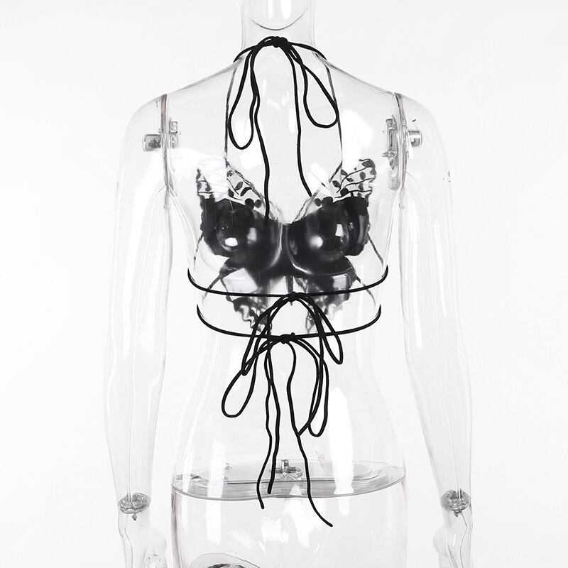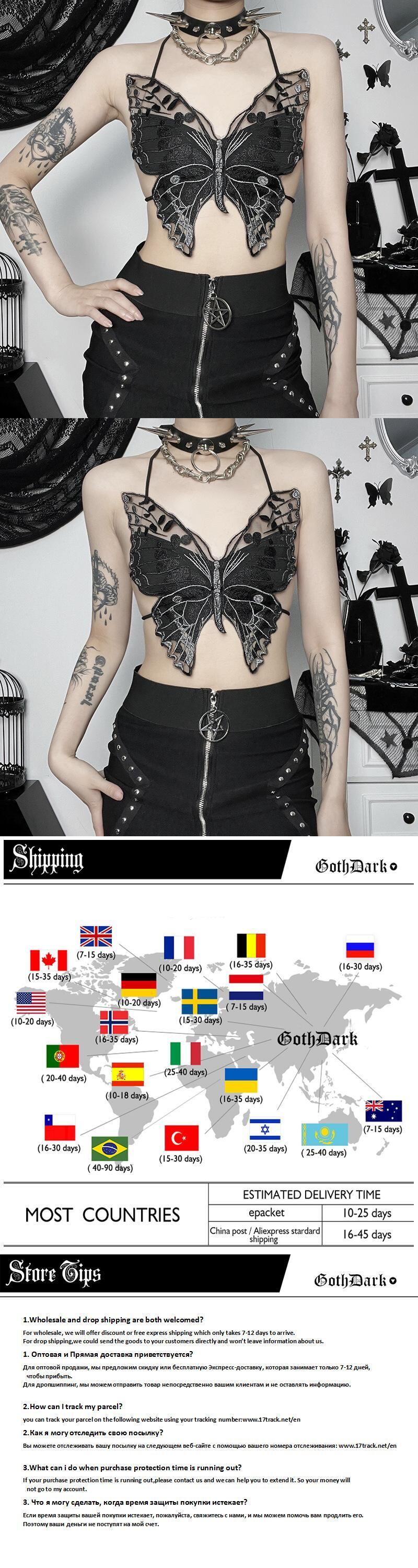 送料無料 ゴスダークフェアリーコアレース蝶背中の開いたキャミソールY2kグランジセクシーな包帯ホルタートップモールゴシック刺繍作物祭りの衣装 AE155588740152213956