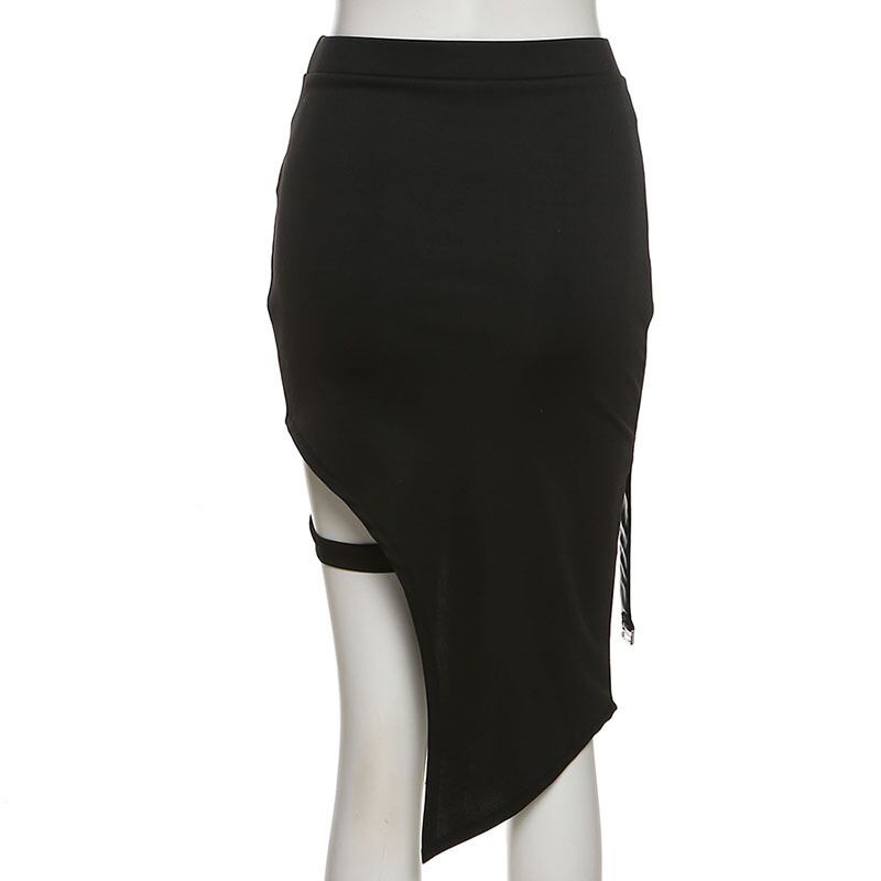 送料無料 ゴスダーク Techwear ゴシックパッチワークセクシーなミニスカートの女性グランジ不規則な裾ウエストカーゴスカートヒップホップ黒夏 2023 ブラック サマー 夏物 AE155588793292290103