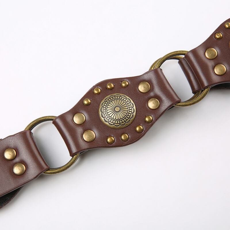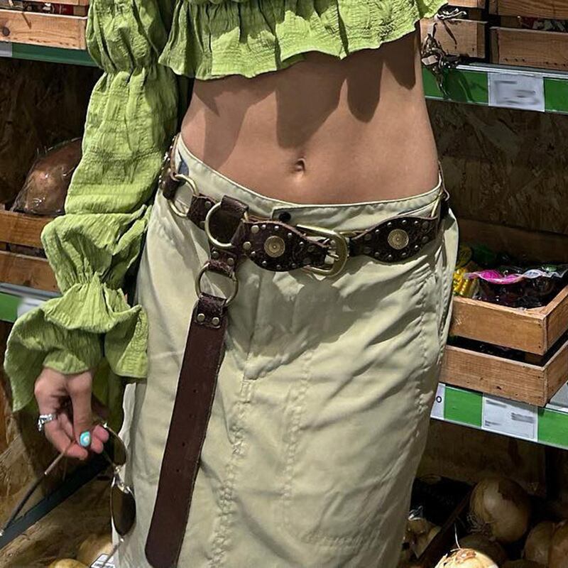 送料無料 ゴスダークフェイク Pu グランジ Y2k ヴィンテージ自由奔放に生きるディスクベルトコンチョウエスタンリングバックルウエストバンドゴシックストリートアクセサリー ハーネス ファー 指輪 ビンテージ AE155588763852240328